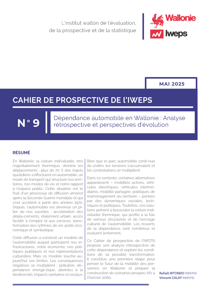 Ce Cahier de prospective de l’IWEPS propose une analyse rétrospective de cette dépendance et explore les conditions de sa possible transformation. Il constitue une première étape pour penser le futur de la mobilité des personnes en Wallonie et prépare la construction de scénarios prospectifs à l’horizon 2060.